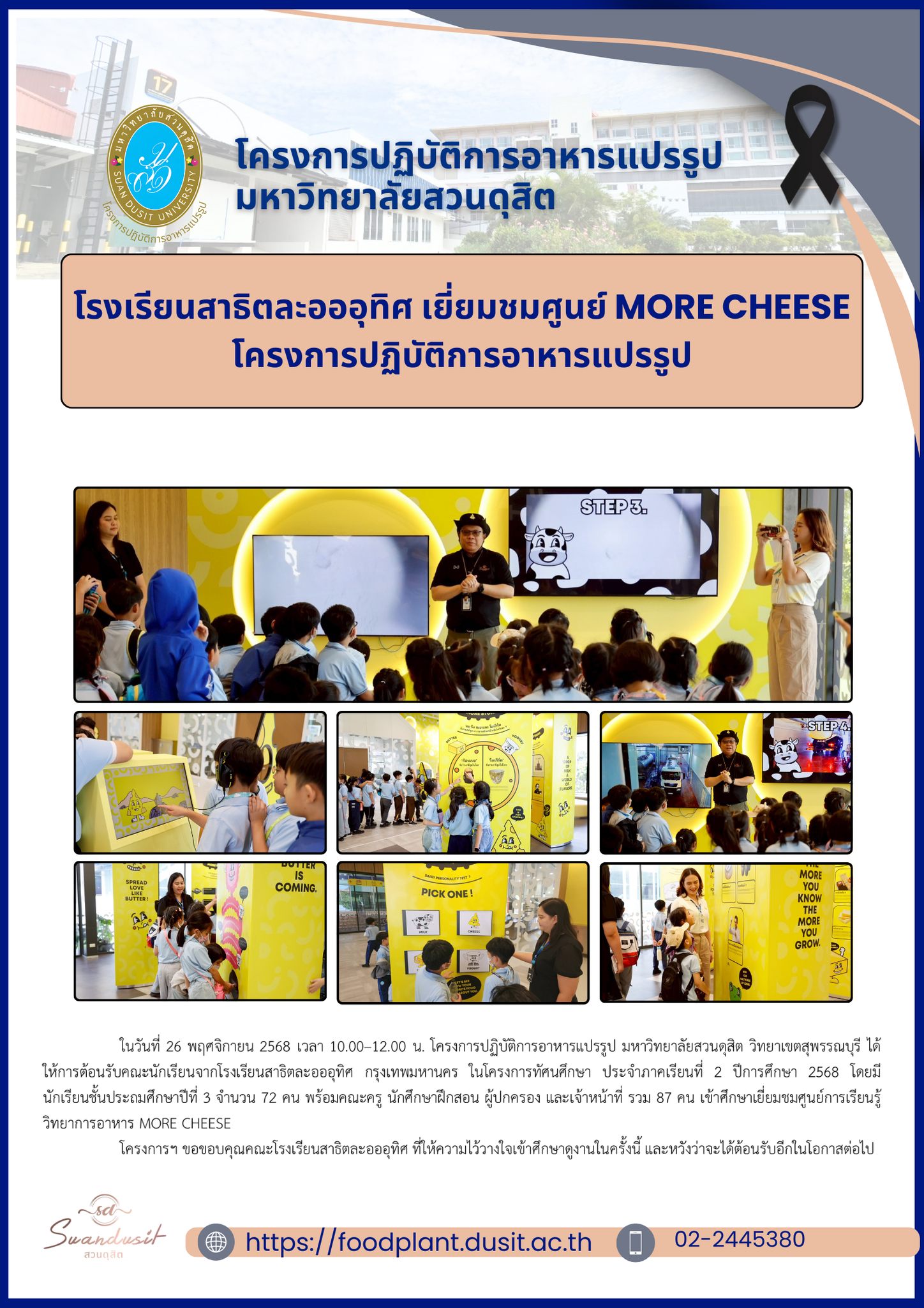 โรงเรียนสาธิตละอออุทิศ เยี่ยมชมศูนย์การเรียนรู้วิทยาการอาหาร MORE CHEESE โครงการปฏิบัติการอาหารแปรรูป