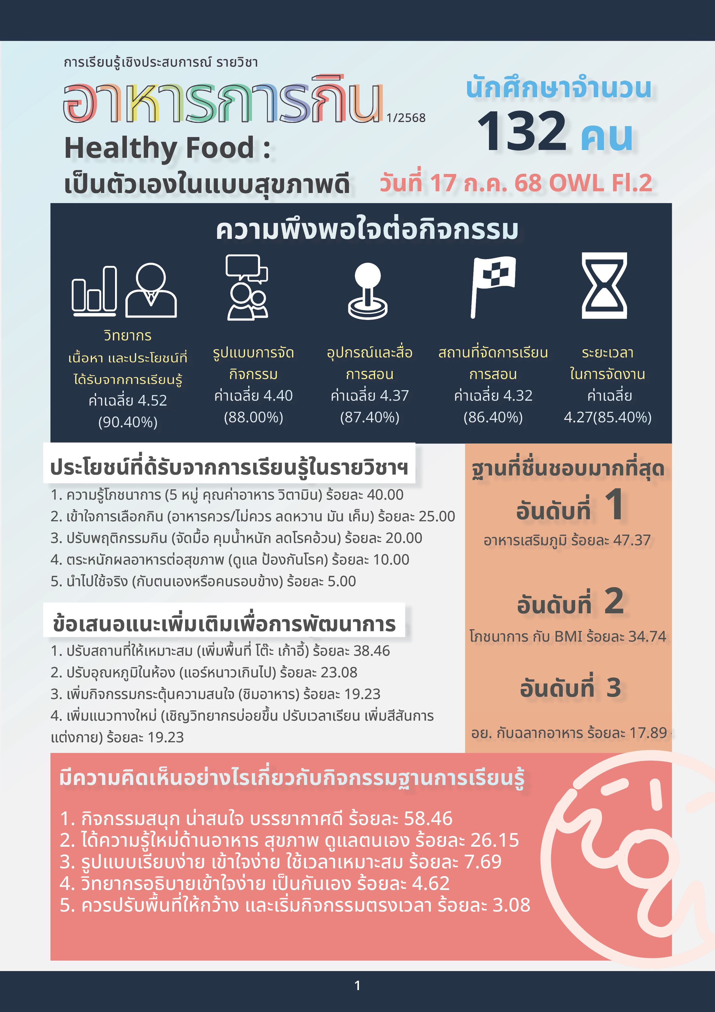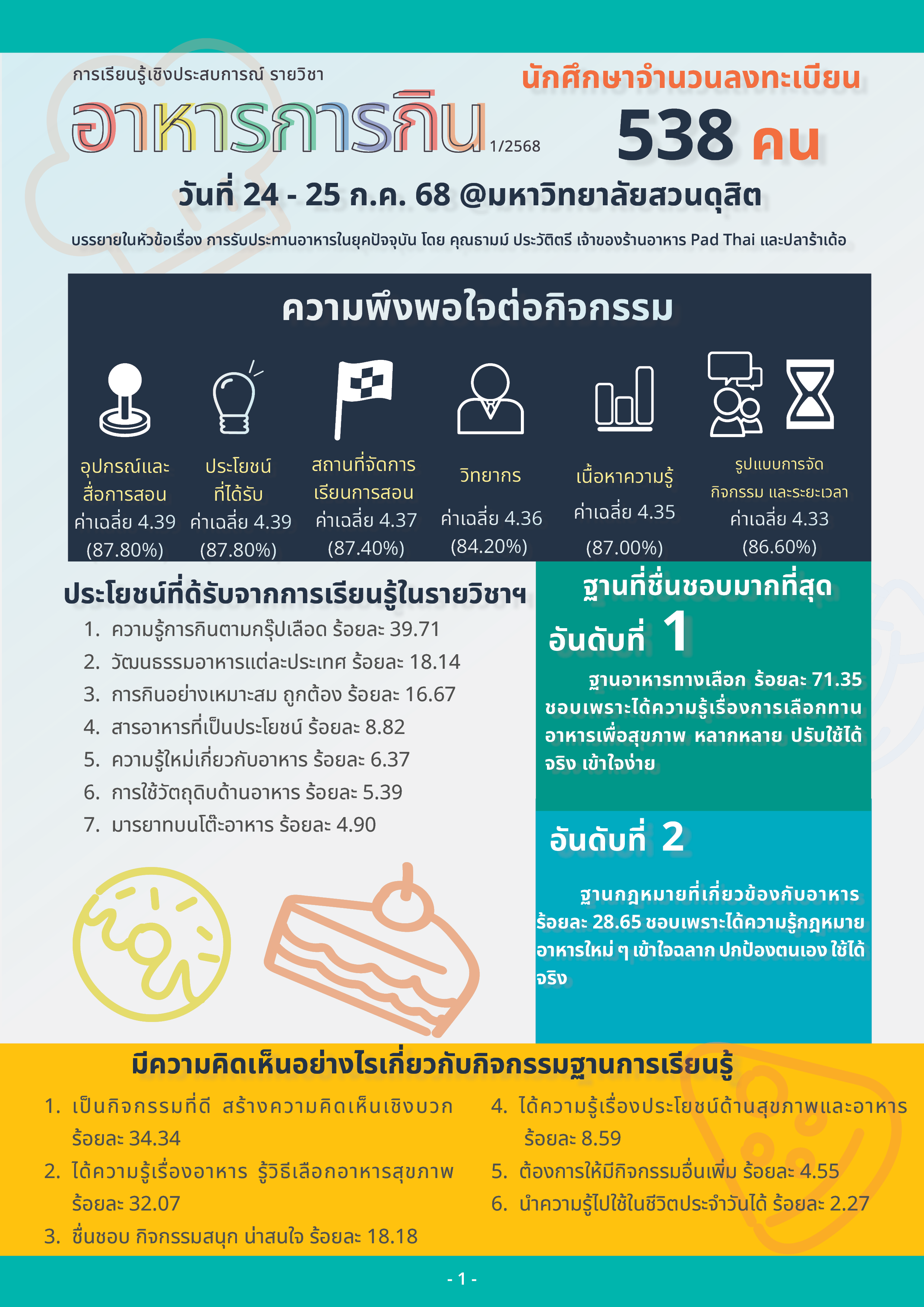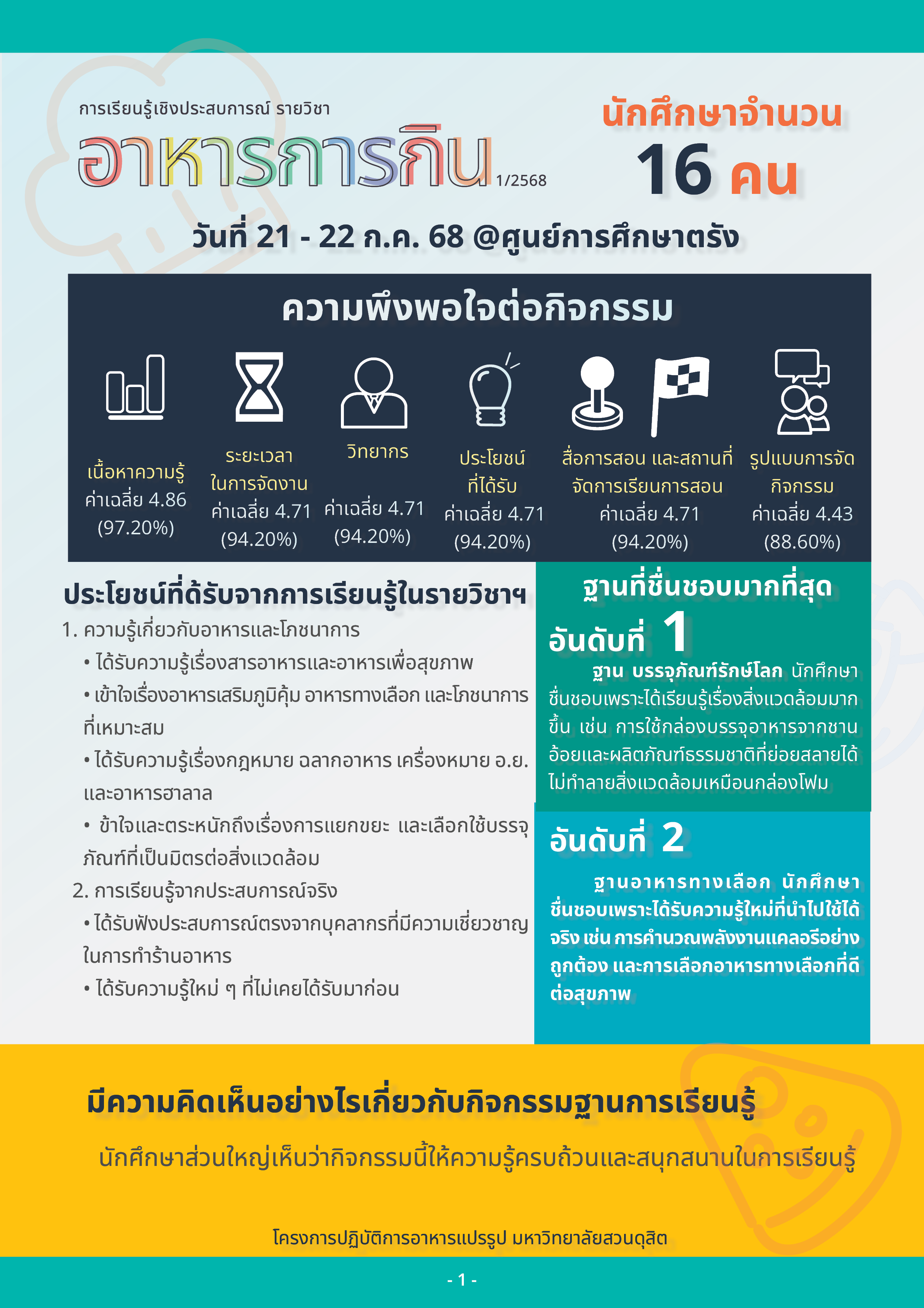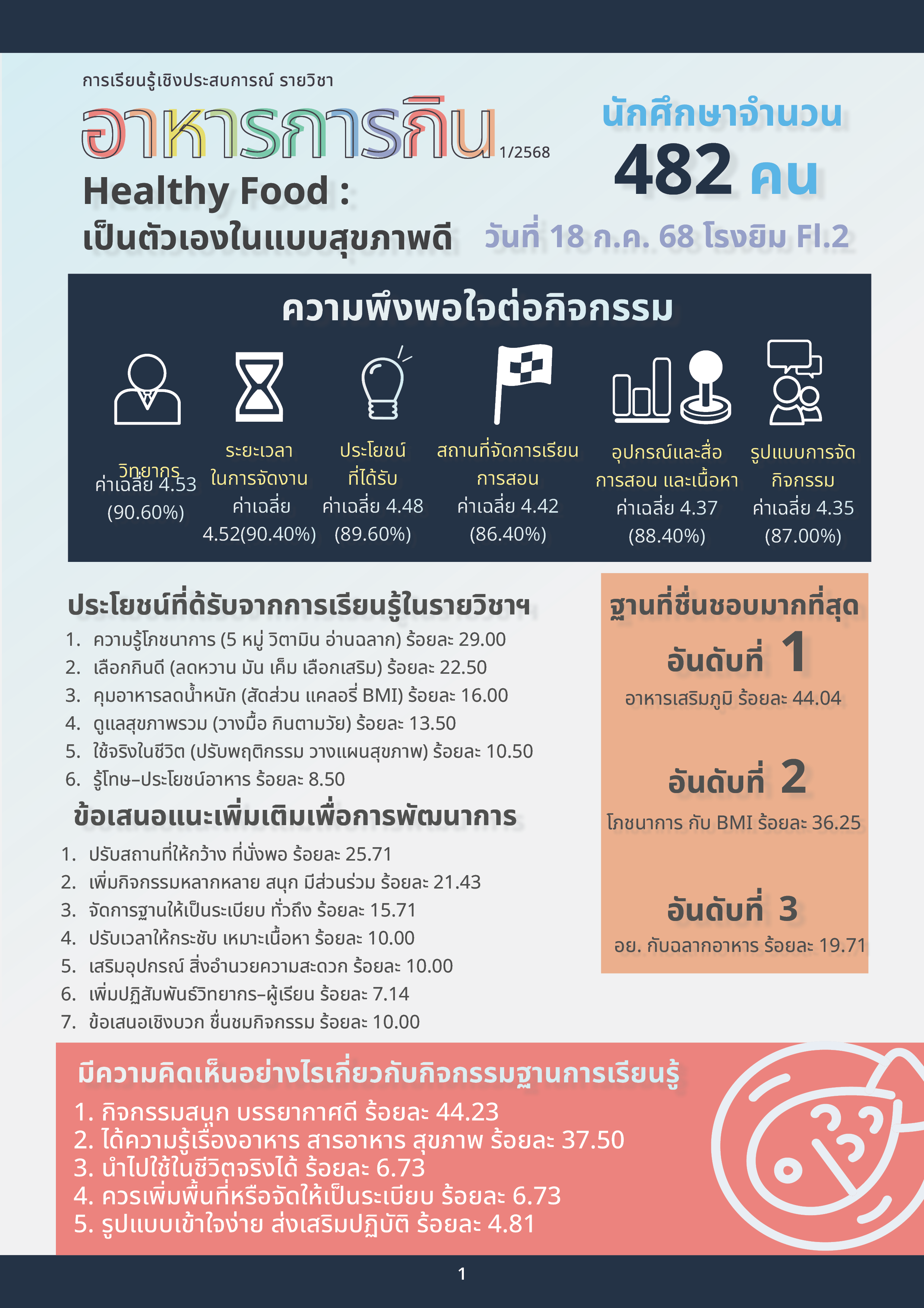 รายวิชา “อาหารการกิน” ภาคเรียนที่ 1/2568