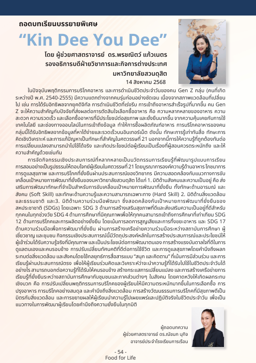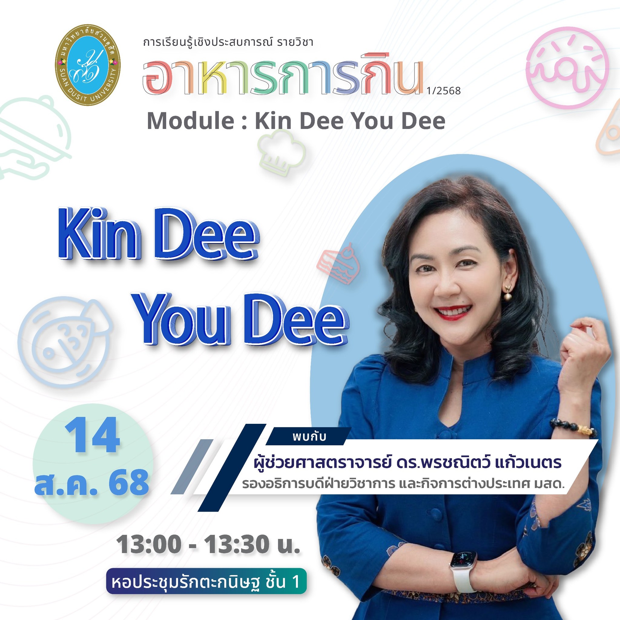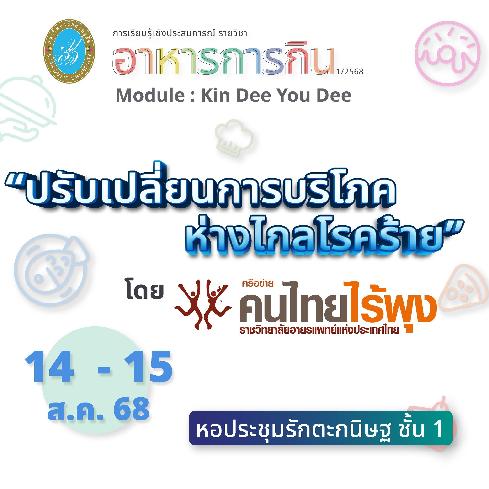 การเรียนรู้เชิงประสบการณ์รายวิชา “อาหารการกิน”บรรยายพิเศษ “Kin Dee You Dee”โดย ผศ.ดร.พรชนิตว์แก้วเนตร รองอธิการบดีฝ่ายวิชาการและกิจการต่างประเทศ มหาวิทยาลัยสวนดุสิต